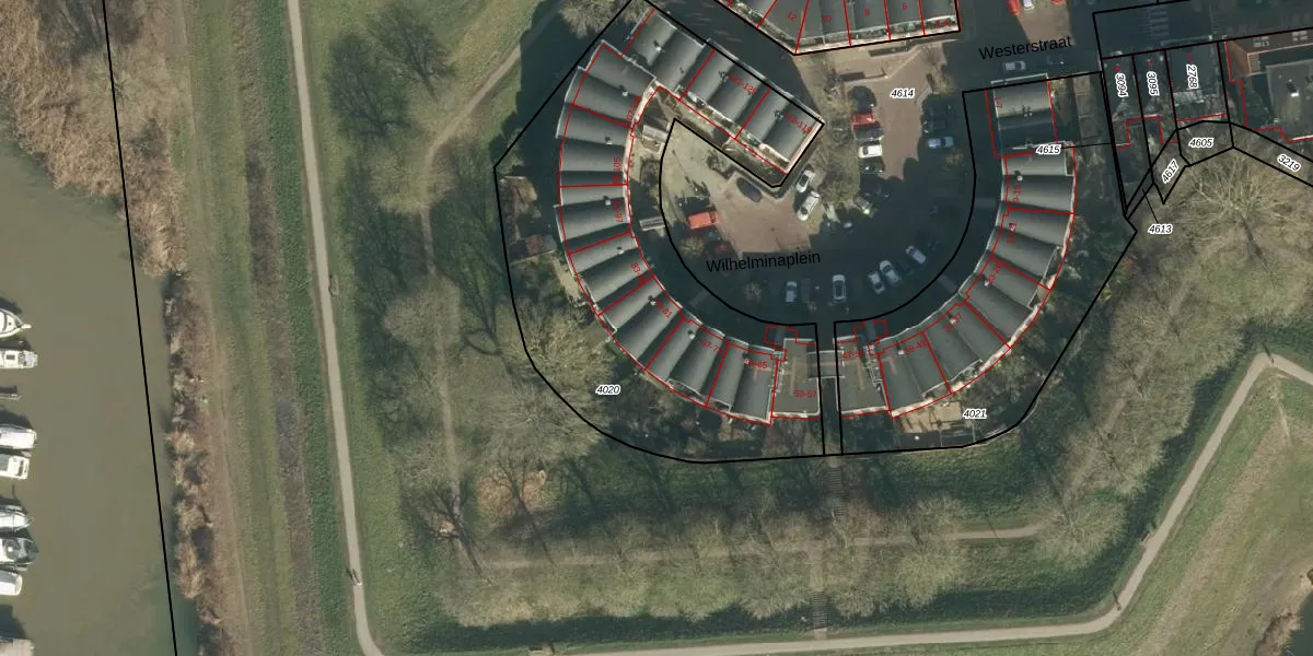Wilhelminaplein 77 is gelegen op kadastraal perceel GRC00D4020. Deze kadastrale aanduiding is uniek en wordt gebruikt door het Kadaster om eigendomsrechten en andere zakelijke rechten vast te leggen. Het perceel maakt onderdeel uit van de kadastrale gemeente Gorinchem.