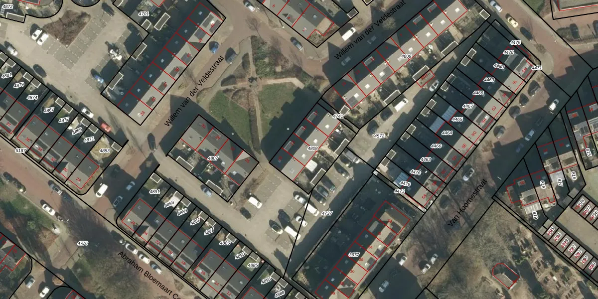 Willem van der Veldestraat 21 is gelegen op kadastraal perceel GRC00F4808. Deze kadastrale aanduiding is uniek en wordt gebruikt door het Kadaster om eigendomsrechten en andere zakelijke rechten vast te leggen. Het perceel maakt onderdeel uit van de kadastrale gemeente Gorinchem.