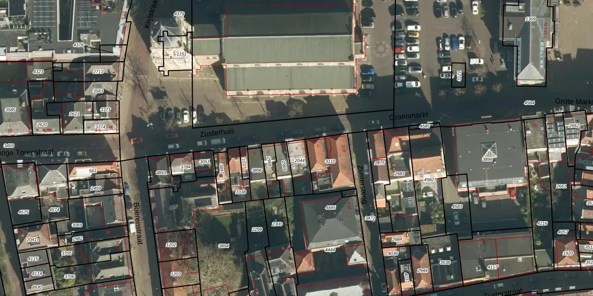 Zusterhuis 3 is gelegen op kadastraal perceel GRC00D2044. Deze kadastrale aanduiding is uniek en wordt gebruikt door het Kadaster om eigendomsrechten en andere zakelijke rechten vast te leggen. Het perceel maakt onderdeel uit van de kadastrale gemeente Gorinchem.