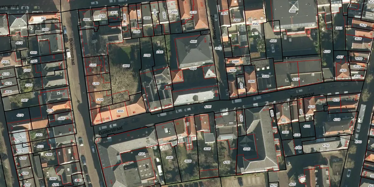 Zustersteeg 30 is gelegen op kadastraal perceel GRC00D4444. Deze kadastrale aanduiding is uniek en wordt gebruikt door het Kadaster om eigendomsrechten en andere zakelijke rechten vast te leggen. Het perceel maakt onderdeel uit van de kadastrale gemeente Gorinchem.