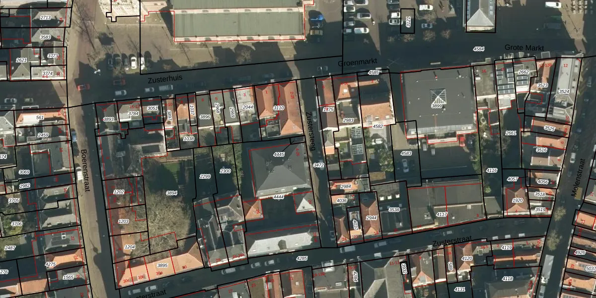 Het perceel waarop Zustersteeg 4 staat heeft een oppervlakte van 919 m². Dit is een groot perceel. De perceeloppervlakte wordt geregistreerd door het Kadaster. Gedetailleerde informatie over de maten van dit perceel kunt u vinden in het rapport Kadastrale kaart met maatvoering van Zustersteeg 4.