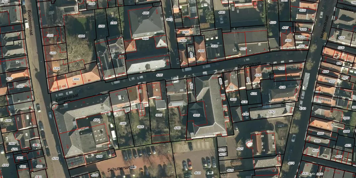 Het perceel waarop Zusterstraat 19-D staat heeft een oppervlakte van 372 m². Dit is een groot perceel. De perceeloppervlakte wordt geregistreerd door het Kadaster. Gedetailleerde informatie over de maten van dit perceel kunt u vinden in het rapport Kadastrale kaart met maatvoering van Zusterstraat 19-D.