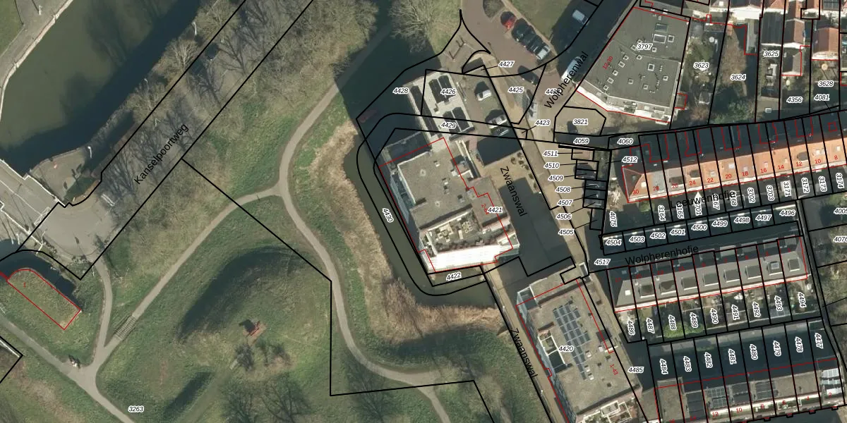 Zwaanswal 32 is gelegen op kadastraal perceel GRC00D4421. Deze kadastrale aanduiding is uniek en wordt gebruikt door het Kadaster om eigendomsrechten en andere zakelijke rechten vast te leggen. Het perceel maakt onderdeel uit van de kadastrale gemeente Gorinchem.
