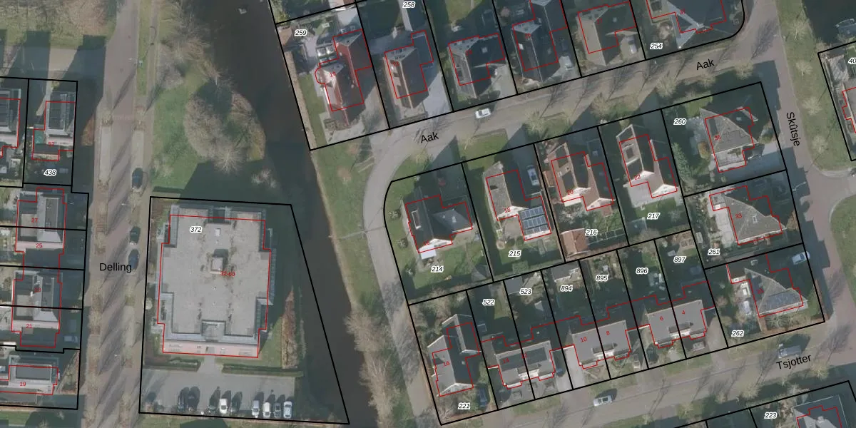 Aak 16 is gelegen op kadastraal perceel GRD00F214. Deze kadastrale aanduiding is uniek en wordt gebruikt door het Kadaster om eigendomsrechten en andere zakelijke rechten vast te leggen. Het perceel maakt onderdeel uit van de kadastrale gemeente Gorredijk.