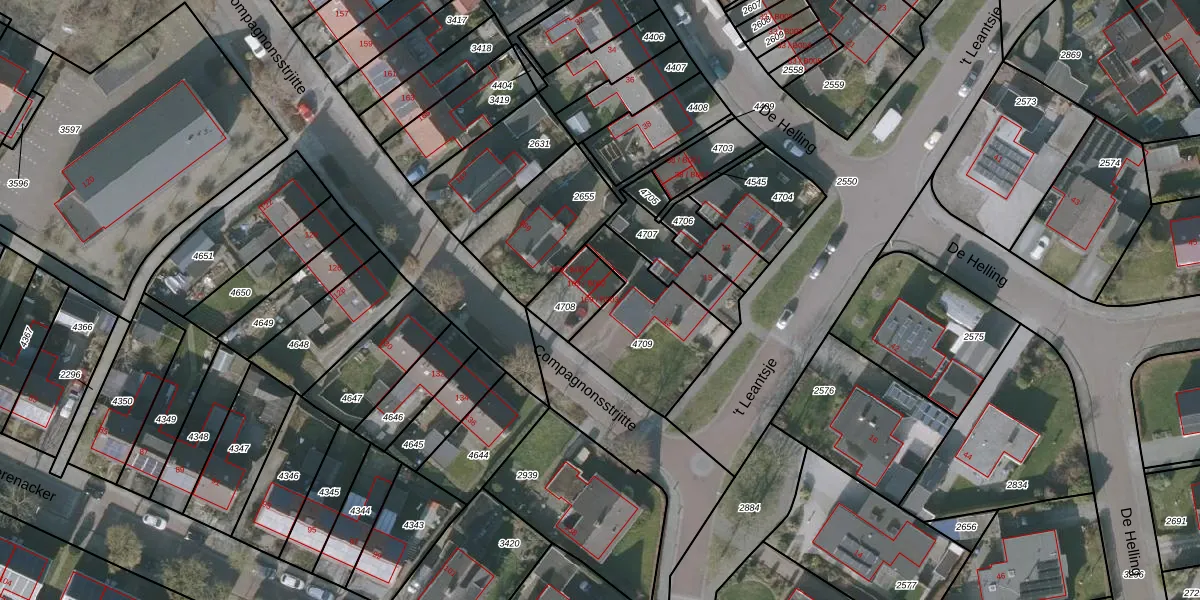 Compagnonsstrjitte 169-B003 is gelegen op kadastraal perceel GRD00C4708. Deze kadastrale aanduiding is uniek en wordt gebruikt door het Kadaster om eigendomsrechten en andere zakelijke rechten vast te leggen. Het perceel maakt onderdeel uit van de kadastrale gemeente Gorredijk.