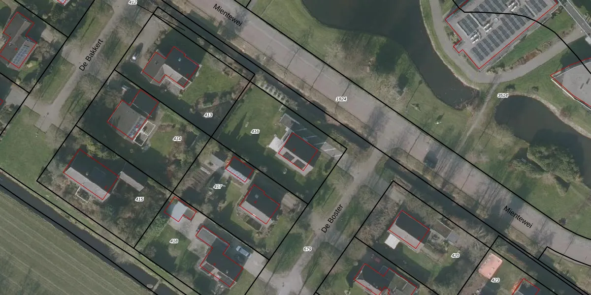 Gebruik de zoekbalk of klik op een perceel voor informatie over de adressen binnen dit perceel.