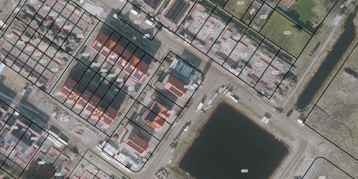 Het perceel waarop het adres ligt is GRD00-C-5238. De afkorting 'GRD00' staat voor kadastrale gemeente Gorredijk. Het perceel is 543 m² groot. Dat is kleiner dan de gemiddelde perceeloppervlakte in Gorredijk, dat op 5829,06 m² ligt. De grootste perceeloppervlakte in de kadastrale gemeente is 79,6 ha. De kleinste oppervlakte bedraagt 0 m². Er zijn geen andere adressen aanwezig op het perceel. De laatste wijziging in het de Basisregistratie Kadaster (BRK) was op 06-03-2024.