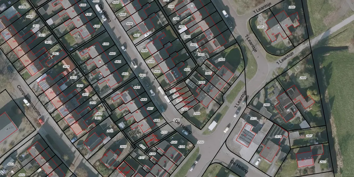 Gebruik de zoekbalk of klik op een perceel voor informatie over de adressen binnen dit perceel.