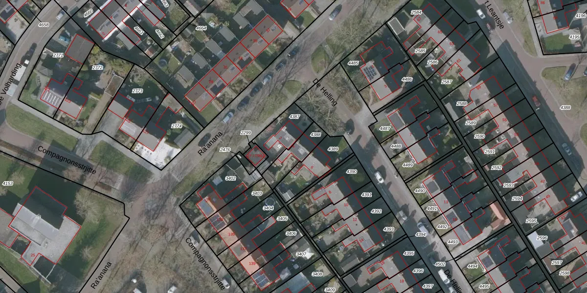 Het perceel waarop De Helling 4 staat heeft een oppervlakte van 163 m². Dit is een middelgroot perceel. De perceeloppervlakte wordt geregistreerd door het Kadaster. Gedetailleerde informatie over de maten van dit perceel kunt u vinden in het rapport Kadastrale kaart met maatvoering van De Helling 4.