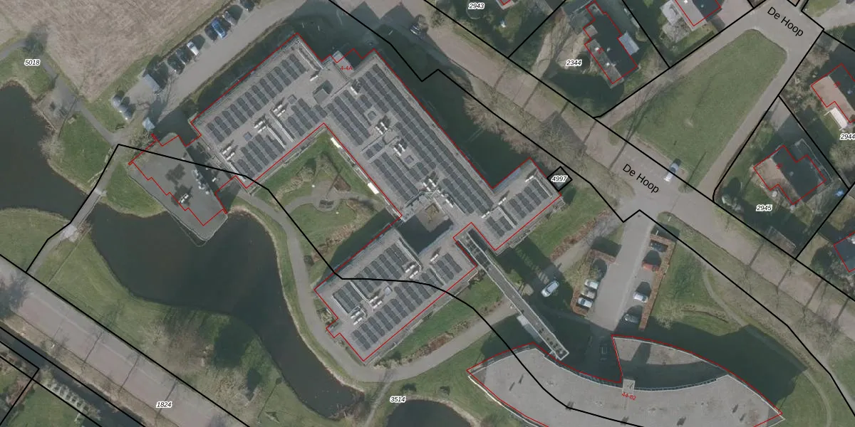 Het perceel waarop De Hoop 4-23 staat heeft een oppervlakte van 1,7 ha. Dit is een zeer groot perceel. De perceeloppervlakte wordt geregistreerd door het Kadaster. Gedetailleerde informatie over de maten van dit perceel kunt u vinden in het rapport Kadastrale kaart met maatvoering van De Hoop 4-23.