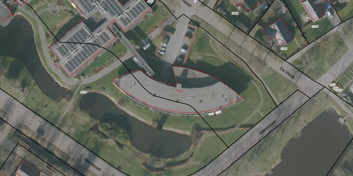 De Hoop 46 is gelegen op kadastraal perceel GRD00C5018. Deze kadastrale aanduiding is uniek en wordt gebruikt door het Kadaster om eigendomsrechten en andere zakelijke rechten vast te leggen. Het perceel maakt onderdeel uit van de kadastrale gemeente Gorredijk.