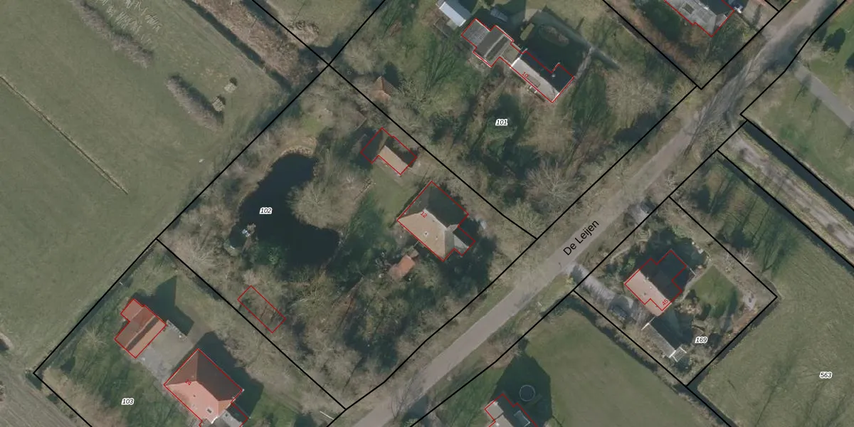 De Leijen 12 is gelegen op kadastraal perceel GRD00G102. Deze kadastrale aanduiding is uniek en wordt gebruikt door het Kadaster om eigendomsrechten en andere zakelijke rechten vast te leggen. Het perceel maakt onderdeel uit van de kadastrale gemeente Gorredijk.