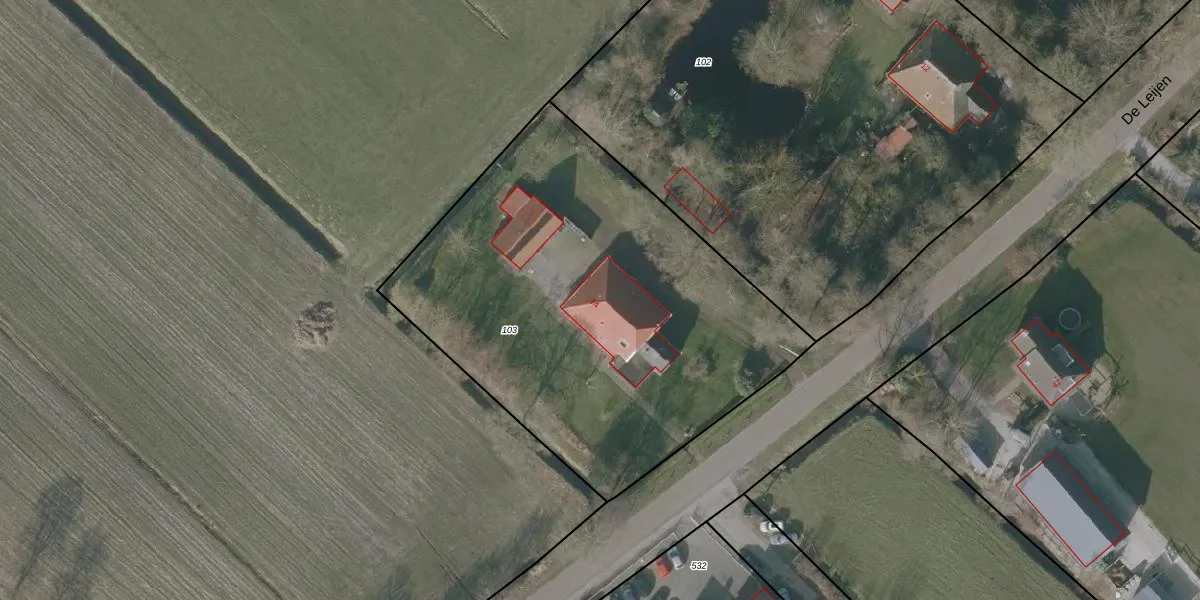 De Leijen 14 is gelegen op kadastraal perceel GRD00G103. Deze kadastrale aanduiding is uniek en wordt gebruikt door het Kadaster om eigendomsrechten en andere zakelijke rechten vast te leggen. Het perceel maakt onderdeel uit van de kadastrale gemeente Gorredijk.