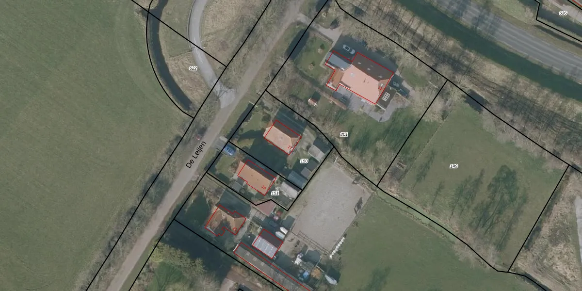 De Leijen 17 is gelegen op kadastraal perceel GRD00G150. Deze kadastrale aanduiding is uniek en wordt gebruikt door het Kadaster om eigendomsrechten en andere zakelijke rechten vast te leggen. Het perceel maakt onderdeel uit van de kadastrale gemeente Gorredijk.