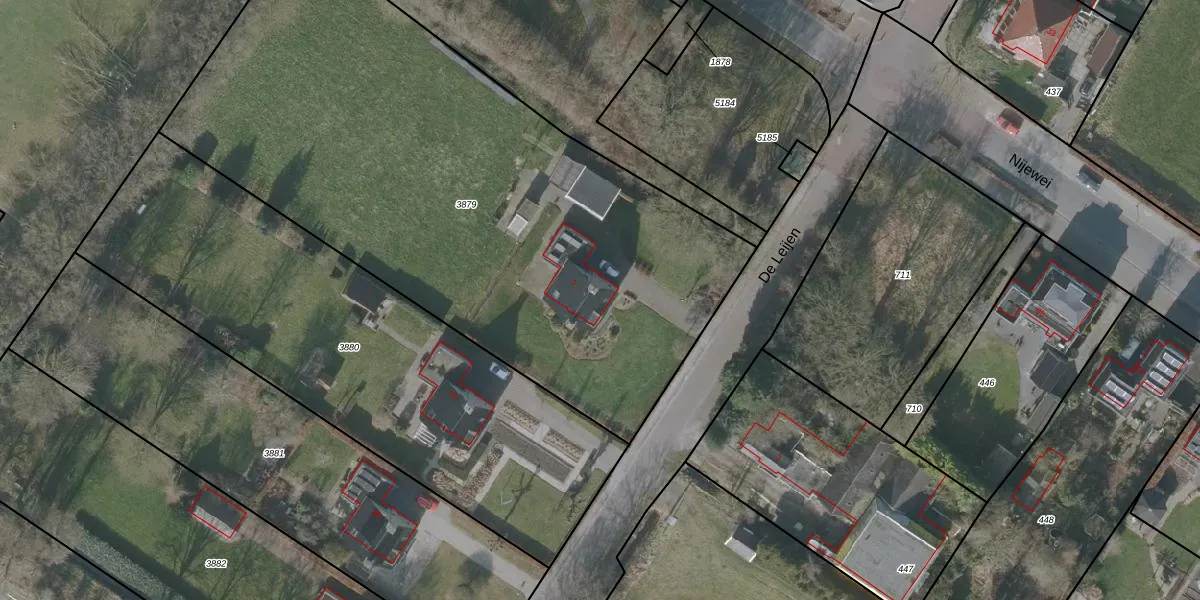 Het perceel waarop De Leijen 2 staat heeft een oppervlakte van 3615 m². Dit is een zeer groot perceel. De perceeloppervlakte wordt geregistreerd door het Kadaster. Gedetailleerde informatie over de maten van dit perceel kunt u vinden in het rapport Kadastrale kaart met maatvoering van De Leijen 2.
