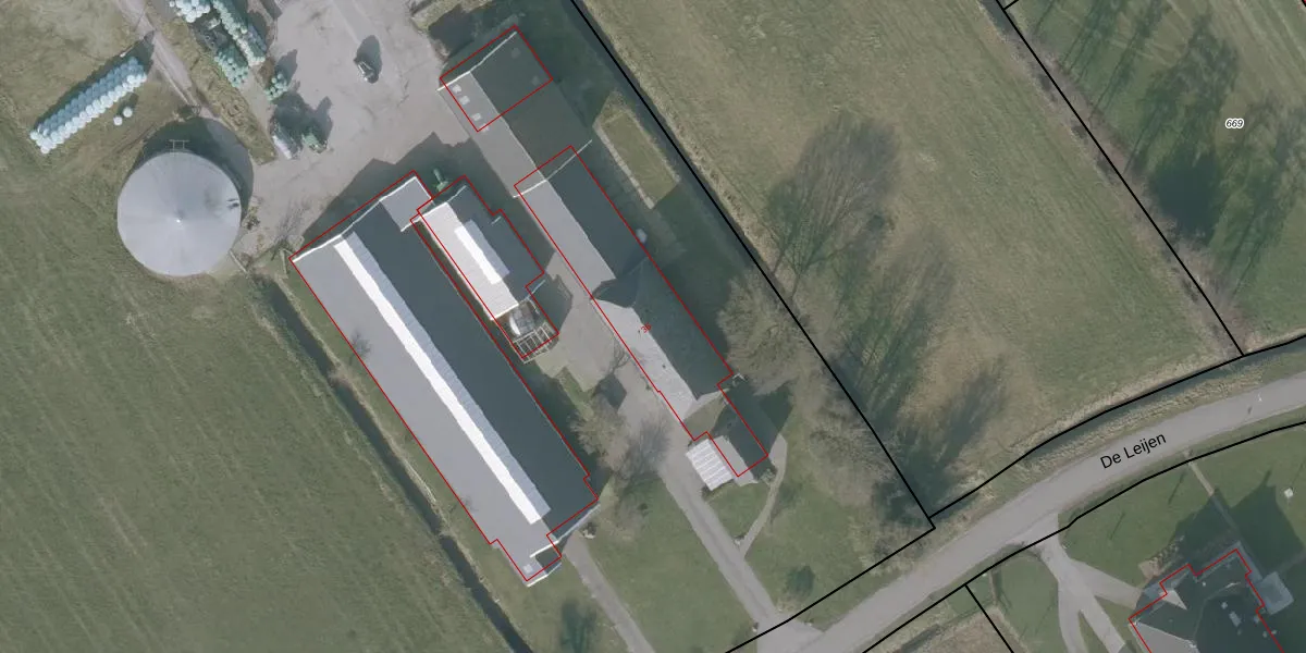 Het perceel waarop De Leijen 36 staat heeft een oppervlakte van 25,3 ha. Dit is een zeer groot perceel. De perceeloppervlakte wordt geregistreerd door het Kadaster. Gedetailleerde informatie over de maten van dit perceel kunt u vinden in het rapport Kadastrale kaart met maatvoering van De Leijen 36.