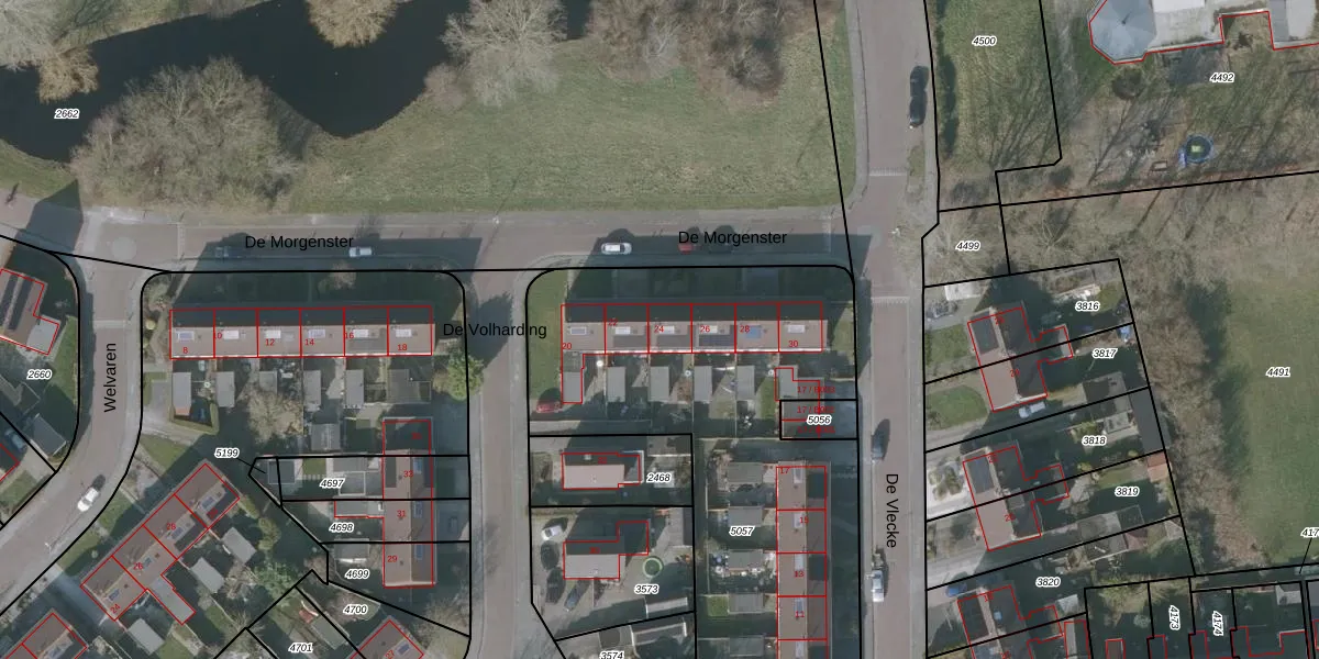 Het perceel waarop De Morgenster 24 staat heeft een oppervlakte van 2906 m². Dit is een zeer groot perceel. De perceeloppervlakte wordt geregistreerd door het Kadaster. Gedetailleerde informatie over de maten van dit perceel kunt u vinden in het rapport Kadastrale kaart met maatvoering van De Morgenster 24.