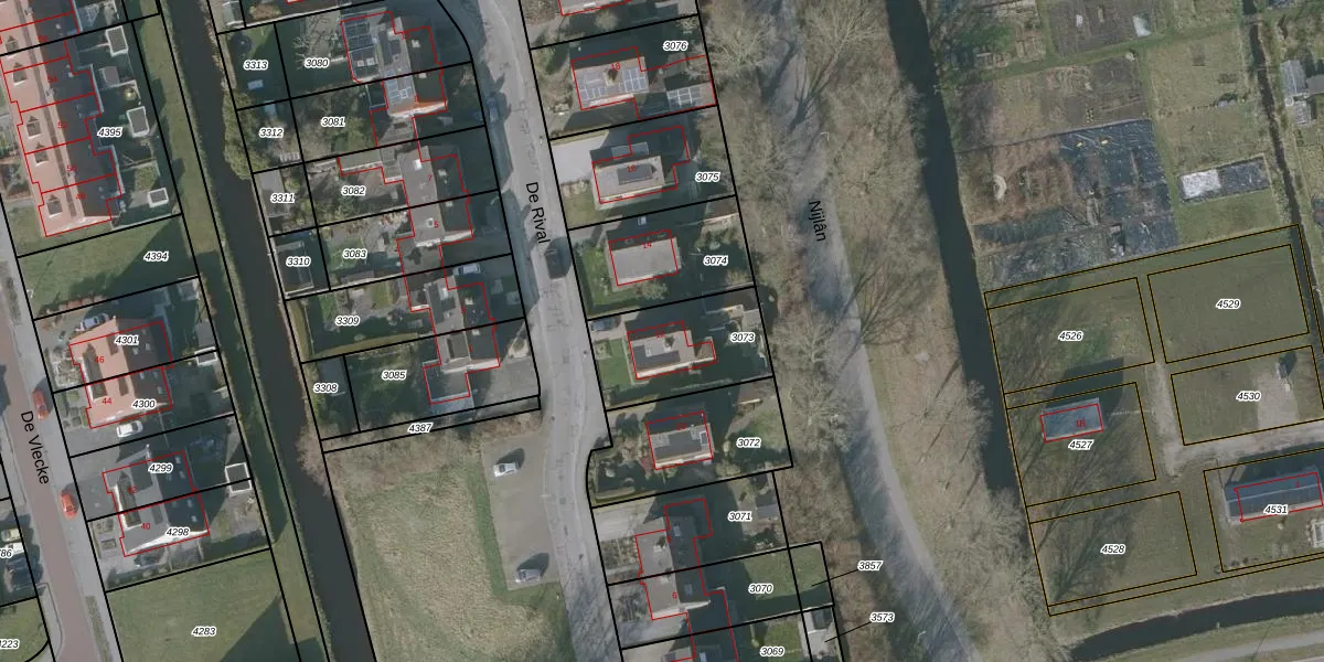 Gebruik de zoekbalk of klik op een perceel voor informatie over de adressen binnen dit perceel.