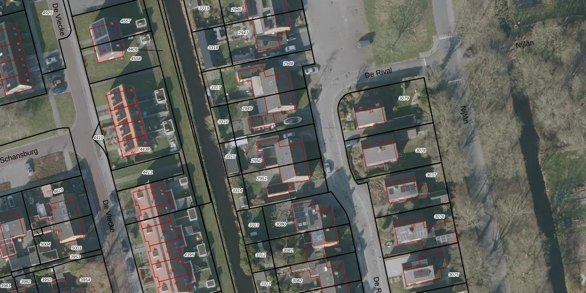 De Rival 15 is gelegen op kadastraal perceel GRD00B2950. Deze kadastrale aanduiding is uniek en wordt gebruikt door het Kadaster om eigendomsrechten en andere zakelijke rechten vast te leggen. Het perceel maakt onderdeel uit van de kadastrale gemeente Gorredijk.
