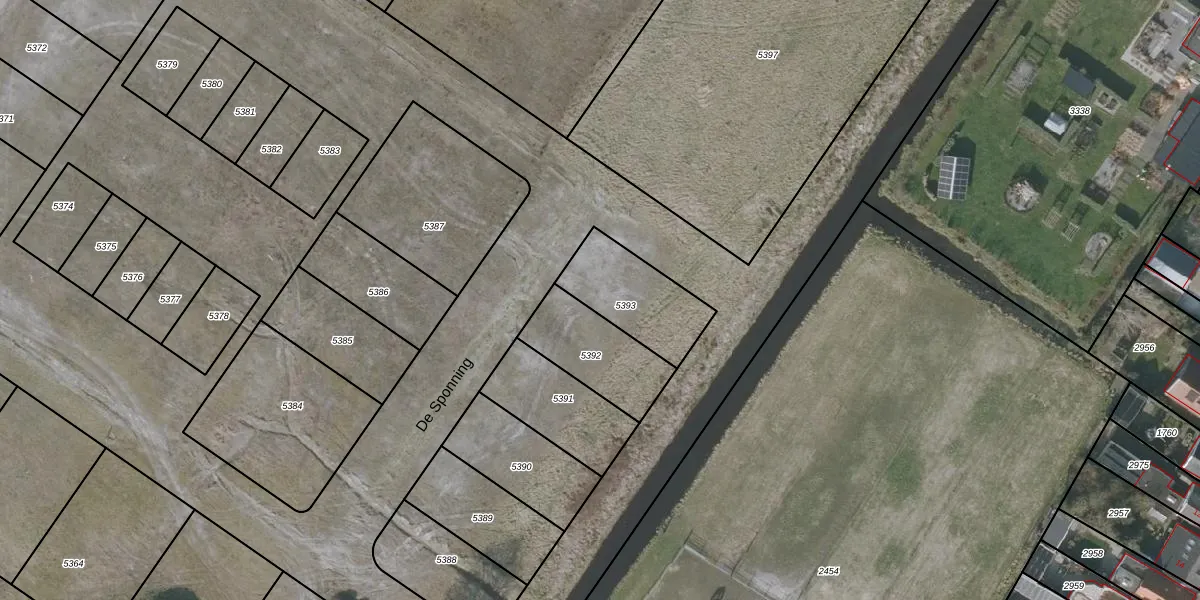 De Sponning 1 is gelegen op kadastraal perceel GRD00C5393. Deze kadastrale aanduiding is uniek en wordt gebruikt door het Kadaster om eigendomsrechten en andere zakelijke rechten vast te leggen. Het perceel maakt onderdeel uit van de kadastrale gemeente Gorredijk.