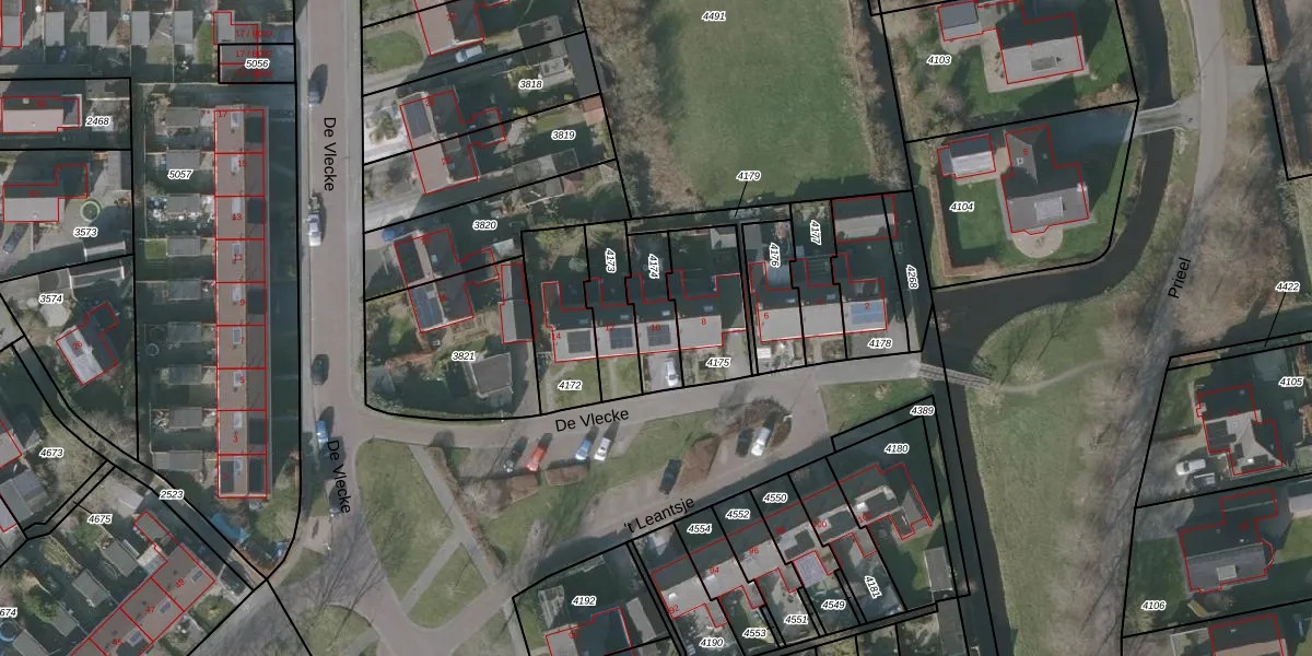 De Vlecke 10 is gelegen op kadastraal perceel GRD00B4174. Deze kadastrale aanduiding is uniek en wordt gebruikt door het Kadaster om eigendomsrechten en andere zakelijke rechten vast te leggen. Het perceel maakt onderdeel uit van de kadastrale gemeente Gorredijk.
