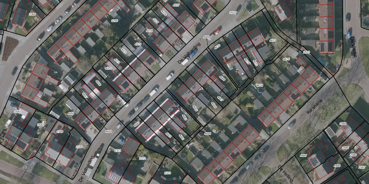 Gebruik de zoekbalk of klik op een perceel voor informatie over de adressen binnen dit perceel.
