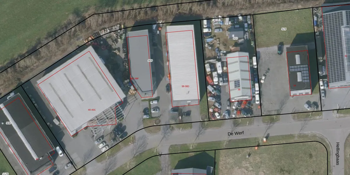 De Werf 38-A is gelegen op kadastraal perceel GRD00E909. Deze kadastrale aanduiding is uniek en wordt gebruikt door het Kadaster om eigendomsrechten en andere zakelijke rechten vast te leggen. Het perceel maakt onderdeel uit van de kadastrale gemeente Gorredijk.