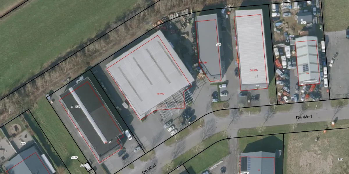 De Werf 40-A is gelegen op kadastraal perceel GRD00E909. Deze kadastrale aanduiding is uniek en wordt gebruikt door het Kadaster om eigendomsrechten en andere zakelijke rechten vast te leggen. Het perceel maakt onderdeel uit van de kadastrale gemeente Gorredijk.