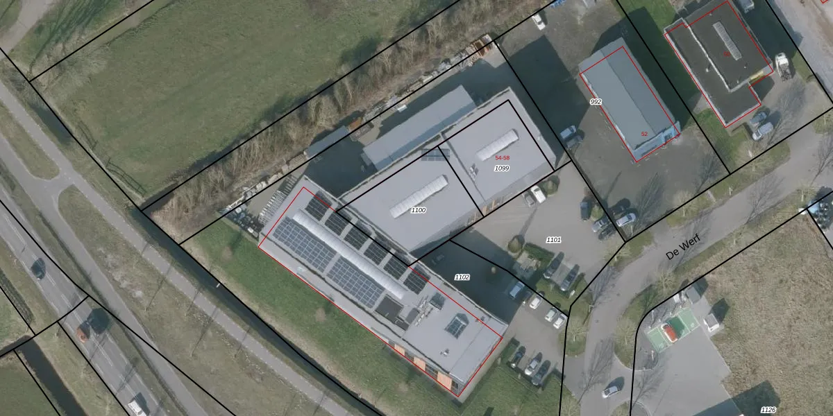 De Werf 56 is gelegen op kadastraal perceel GRD00E1100. Deze kadastrale aanduiding is uniek en wordt gebruikt door het Kadaster om eigendomsrechten en andere zakelijke rechten vast te leggen. Het perceel maakt onderdeel uit van de kadastrale gemeente Gorredijk.