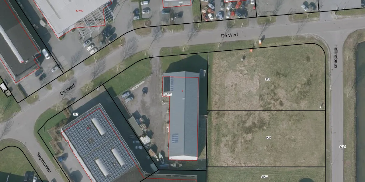 De Werf 9 is gelegen op kadastraal perceel GRD00E911. Deze kadastrale aanduiding is uniek en wordt gebruikt door het Kadaster om eigendomsrechten en andere zakelijke rechten vast te leggen. Het perceel maakt onderdeel uit van de kadastrale gemeente Gorredijk.