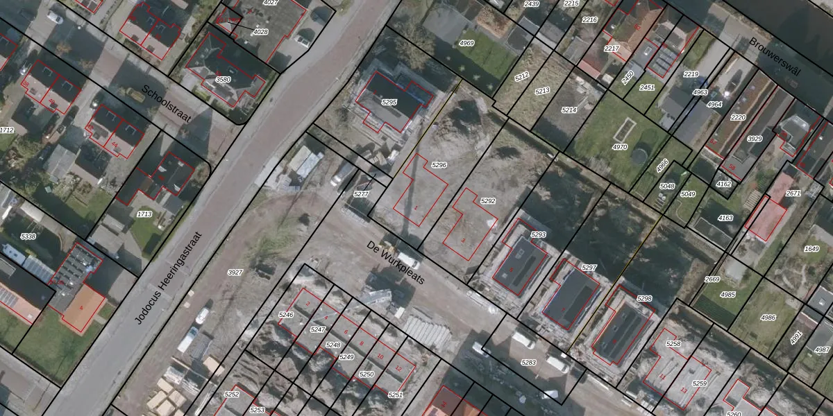 Het perceel waarop De Wurkpleats 1 staat heeft een oppervlakte van 577 m². Dit is een groot perceel. De perceeloppervlakte wordt geregistreerd door het Kadaster. Gedetailleerde informatie over de maten van dit perceel kunt u vinden in het rapport Kadastrale kaart met maatvoering van De Wurkpleats 1.