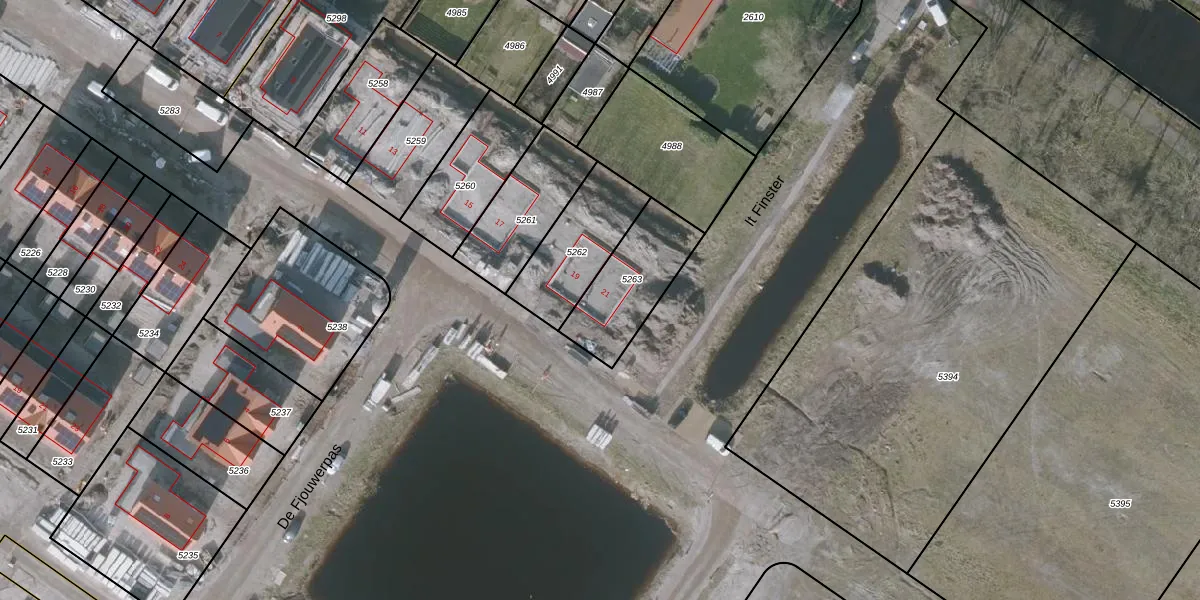 Het perceel waarop het adres ligt is GRD00-C-5263. De afkorting 'GRD00' staat voor kadastrale gemeente Gorredijk. Het perceel is 296 m² groot. Dat is kleiner dan de gemiddelde perceeloppervlakte in Gorredijk, dat op 5836,71 m² ligt. De grootste perceeloppervlakte in de kadastrale gemeente is 79,6 ha. De kleinste oppervlakte bedraagt 0 m². Er zijn geen andere adressen aanwezig op het perceel. In de Basisregistratie Kadaster (BRK) werden de grenzen van het perceel geregistreerd op 29-07-2024.