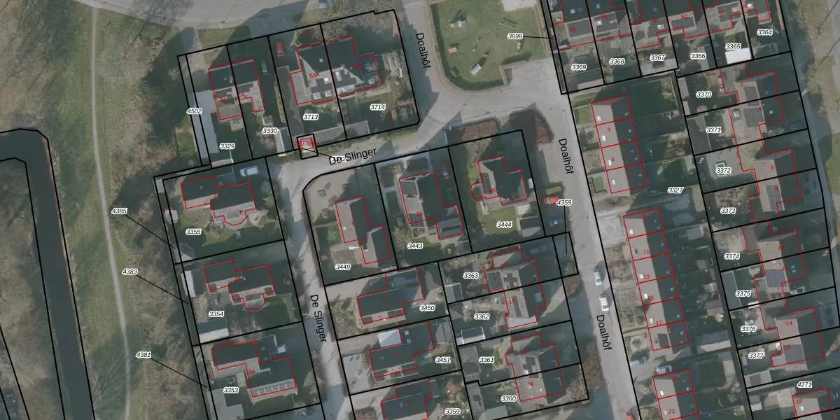 Het perceel waarop Doalhôf 28 staat heeft een oppervlakte van 471 m². Dit is een groot perceel. De perceeloppervlakte wordt geregistreerd door het Kadaster. Gedetailleerde informatie over de maten van dit perceel kunt u vinden in het rapport Kadastrale kaart met maatvoering van Doalhôf 28.