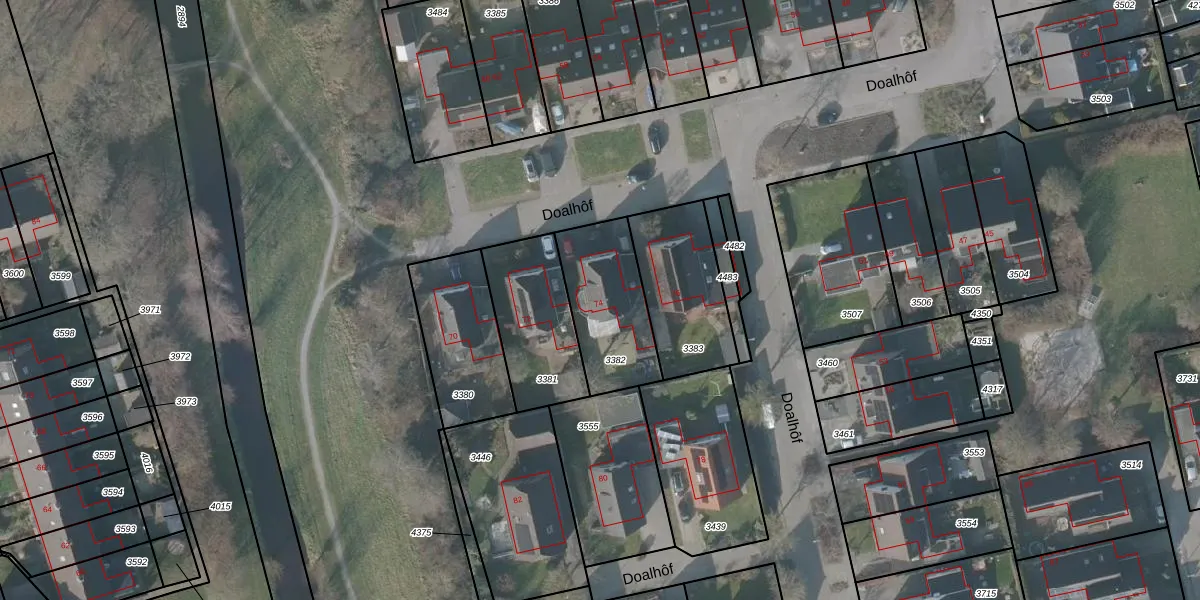 Doalhôf 74 is gelegen op kadastraal perceel GRD00B3382. Deze kadastrale aanduiding is uniek en wordt gebruikt door het Kadaster om eigendomsrechten en andere zakelijke rechten vast te leggen. Het perceel maakt onderdeel uit van de kadastrale gemeente Gorredijk.