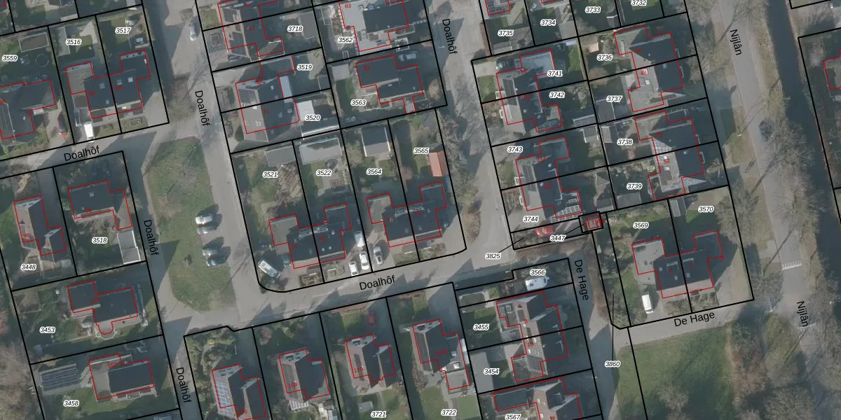 Het perceel waarop Doalhôf 79 staat heeft een oppervlakte van 402 m². Dit is een groot perceel. De perceeloppervlakte wordt geregistreerd door het Kadaster. Gedetailleerde informatie over de maten van dit perceel kunt u vinden in het rapport Kadastrale kaart met maatvoering van Doalhôf 79.