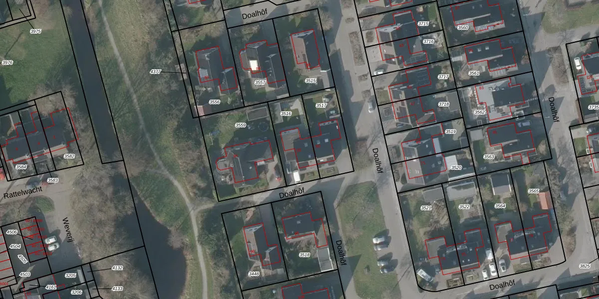 Doalhôf 92 is gelegen op kadastraal perceel GRD00B3516. Deze kadastrale aanduiding is uniek en wordt gebruikt door het Kadaster om eigendomsrechten en andere zakelijke rechten vast te leggen. Het perceel maakt onderdeel uit van de kadastrale gemeente Gorredijk.