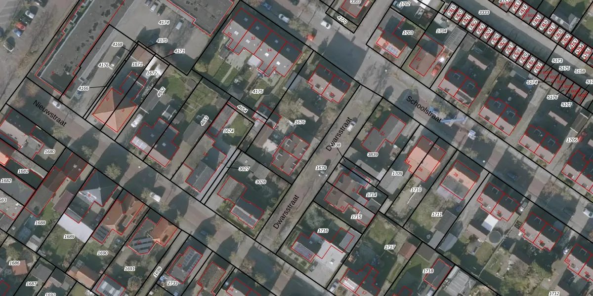 Dwarsstraat 2 is gelegen op kadastraal perceel GRD00C1676. Deze kadastrale aanduiding is uniek en wordt gebruikt door het Kadaster om eigendomsrechten en andere zakelijke rechten vast te leggen. Het perceel maakt onderdeel uit van de kadastrale gemeente Gorredijk.