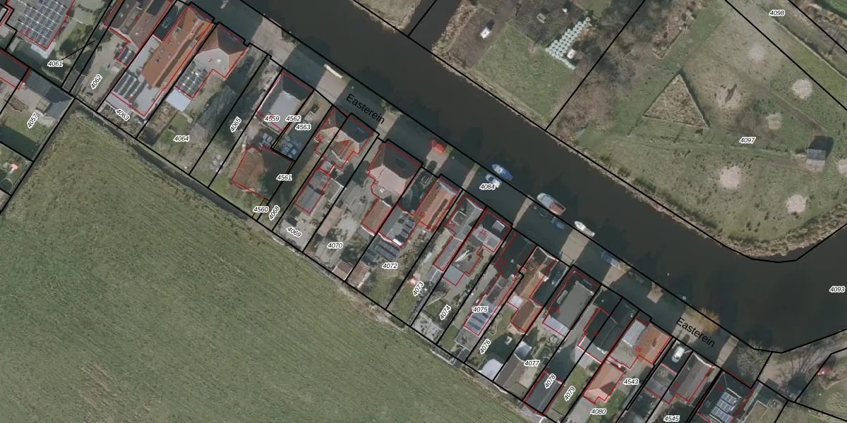 Easterein 13 is gelegen op kadastraal perceel GRD00B4072. Deze kadastrale aanduiding is uniek en wordt gebruikt door het Kadaster om eigendomsrechten en andere zakelijke rechten vast te leggen. Het perceel maakt onderdeel uit van de kadastrale gemeente Gorredijk.