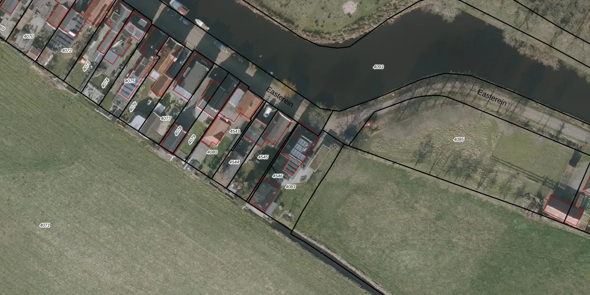 Easterein 22 is gelegen op kadastraal perceel GRD00B4083. Deze kadastrale aanduiding is uniek en wordt gebruikt door het Kadaster om eigendomsrechten en andere zakelijke rechten vast te leggen. Het perceel maakt onderdeel uit van de kadastrale gemeente Gorredijk.