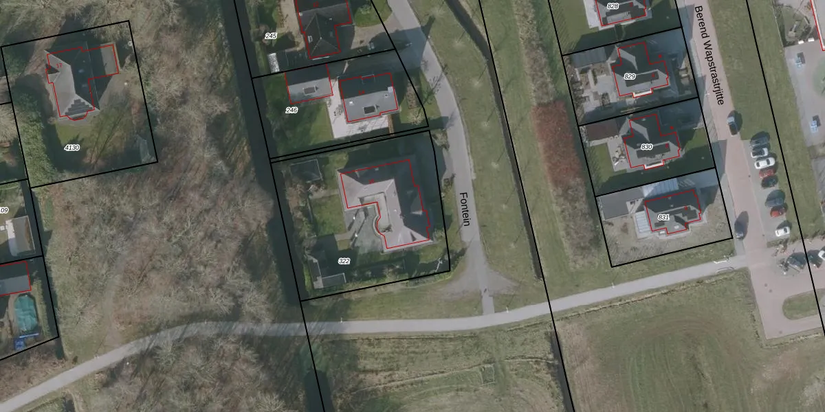 Het perceel waarop Fontein 16 staat heeft een oppervlakte van 1323 m². Dit is een zeer groot perceel. De perceeloppervlakte wordt geregistreerd door het Kadaster. Gedetailleerde informatie over de maten van dit perceel kunt u vinden in het rapport Kadastrale kaart met maatvoering van Fontein 16.