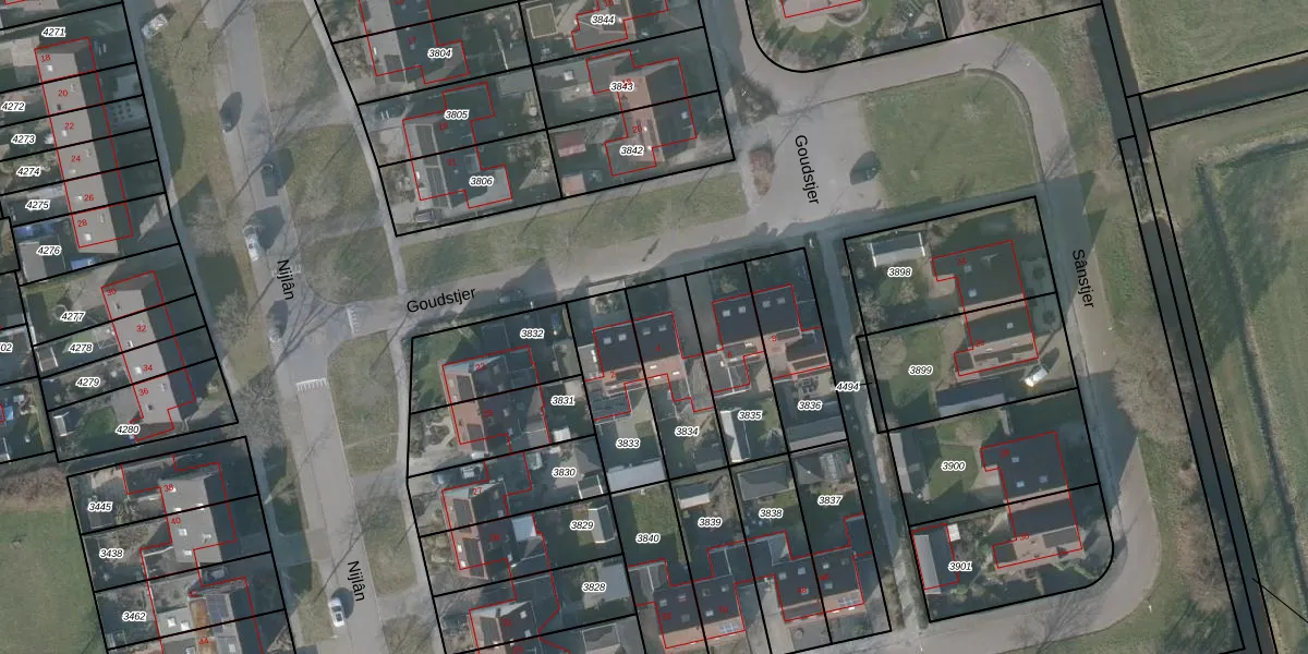 Het perceel waarop Goudstjer 4 staat heeft een oppervlakte van 282 m². Dit is een middelgroot perceel. De perceeloppervlakte wordt geregistreerd door het Kadaster. Gedetailleerde informatie over de maten van dit perceel kunt u vinden in het rapport Kadastrale kaart met maatvoering van Goudstjer 4.