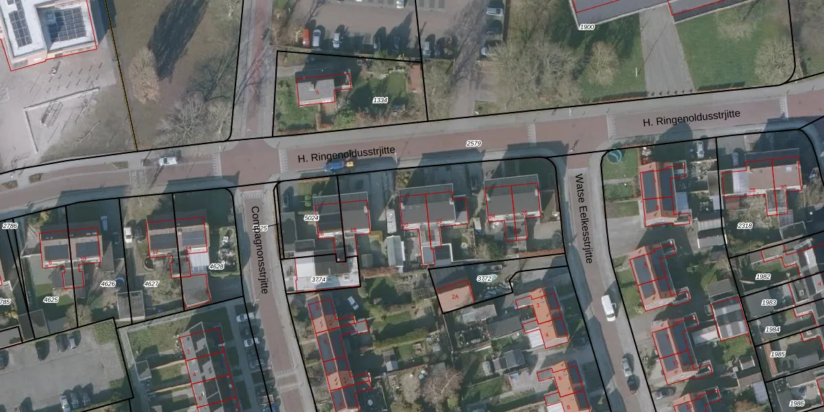 Het perceel waarop H. Ringenoldusstrjitte 20 staat heeft een oppervlakte van 1,3 ha. Dit is een zeer groot perceel. De perceeloppervlakte wordt geregistreerd door het Kadaster. Gedetailleerde informatie over de maten van dit perceel kunt u vinden in het rapport Kadastrale kaart met maatvoering van H. Ringenoldusstrjitte 20.