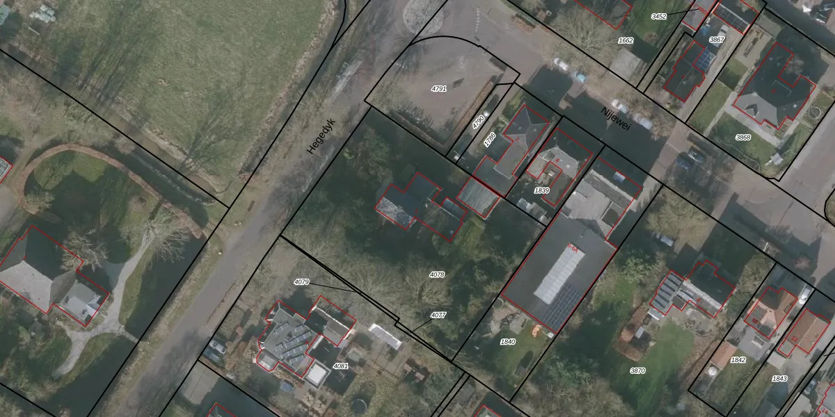 Het perceel waarop Hegedyk 1 staat heeft een oppervlakte van 1925 m². Dit is een zeer groot perceel. De perceeloppervlakte wordt geregistreerd door het Kadaster. Gedetailleerde informatie over de maten van dit perceel kunt u vinden in het rapport Kadastrale kaart met maatvoering van Hegedyk 1.