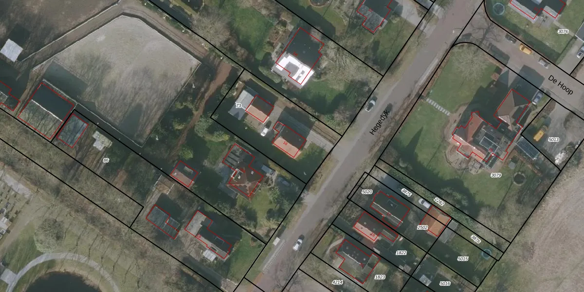 Het perceel waarop Hegedyk 16 staat heeft een oppervlakte van 830 m². Dit is een groot perceel. De perceeloppervlakte wordt geregistreerd door het Kadaster. Gedetailleerde informatie over de maten van dit perceel kunt u vinden in het rapport Kadastrale kaart met maatvoering van Hegedyk 16.