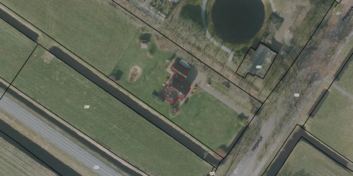 Het perceel waarop Hegedyk 20-A staat heeft een oppervlakte van 7,3 ha. Dit is een zeer groot perceel. De perceeloppervlakte wordt geregistreerd door het Kadaster. Gedetailleerde informatie over de maten van dit perceel kunt u vinden in het rapport Kadastrale kaart met maatvoering van Hegedyk 20-A.