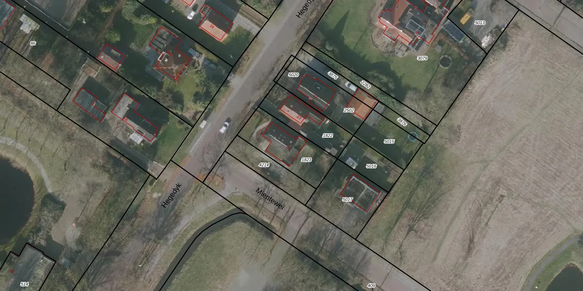 Hegedyk 21 is gelegen op kadastraal perceel GRD00C1823. Deze kadastrale aanduiding is uniek en wordt gebruikt door het Kadaster om eigendomsrechten en andere zakelijke rechten vast te leggen. Het perceel maakt onderdeel uit van de kadastrale gemeente Gorredijk.