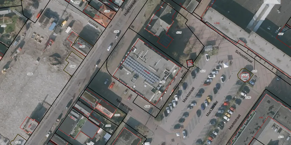 Het perceel waarop Hoofdstraat 63-D staat heeft een oppervlakte van 1727 m². Dit is een zeer groot perceel. De perceeloppervlakte wordt geregistreerd door het Kadaster. Gedetailleerde informatie over de maten van dit perceel kunt u vinden in het rapport Kadastrale kaart met maatvoering van Hoofdstraat 63-D.