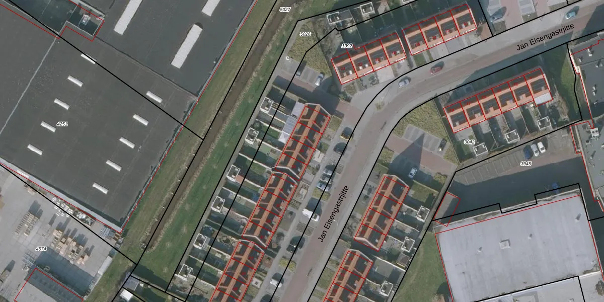 Jan Eisengastrjitte 30 is gelegen op kadastraal perceel GRD00C1392. Deze kadastrale aanduiding is uniek en wordt gebruikt door het Kadaster om eigendomsrechten en andere zakelijke rechten vast te leggen. Het perceel maakt onderdeel uit van de kadastrale gemeente Gorredijk.