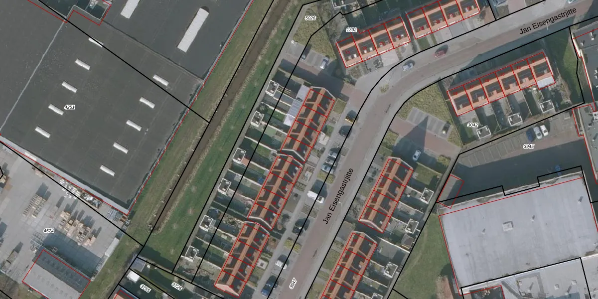 Het perceel waarop Jan Eisengastrjitte 32 staat heeft een oppervlakte van 3440 m². Dit is een zeer groot perceel. De perceeloppervlakte wordt geregistreerd door het Kadaster. Gedetailleerde informatie over de maten van dit perceel kunt u vinden in het rapport Kadastrale kaart met maatvoering van Jan Eisengastrjitte 32.