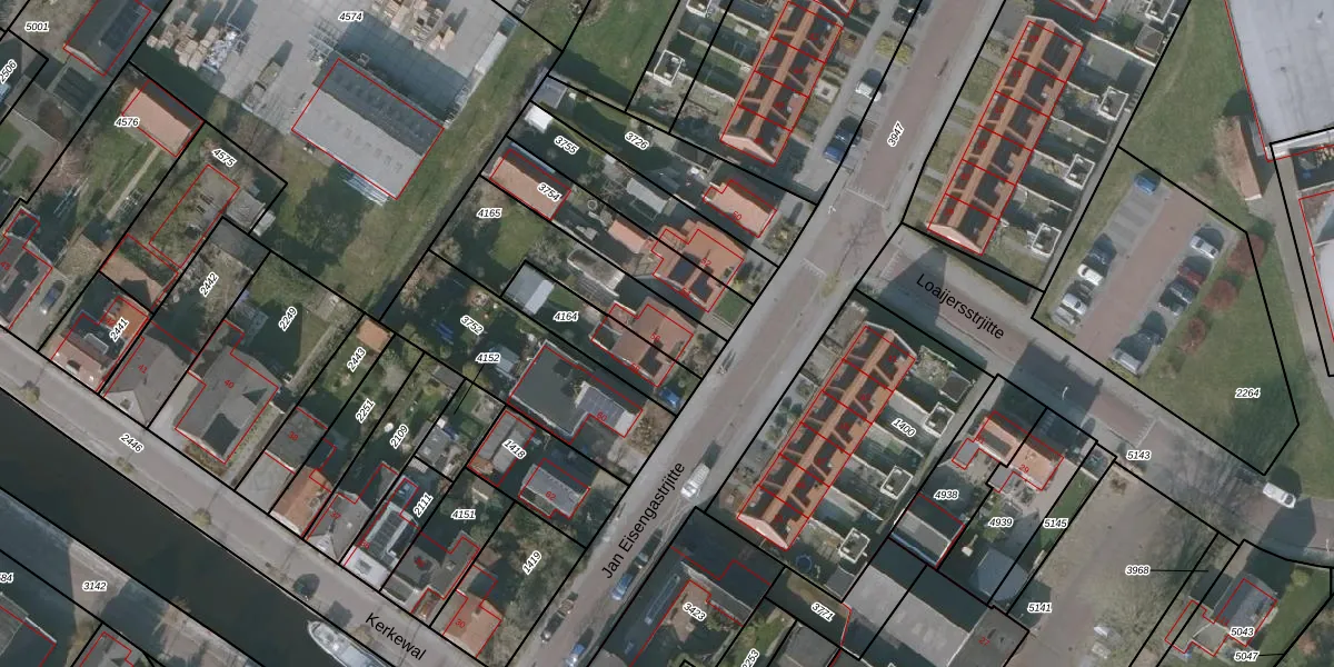 Gebruik de zoekbalk of klik op een perceel voor informatie over de adressen binnen dit perceel.